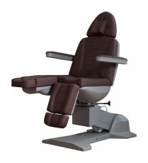 Педикюрное кресло оснащено пятью электромоторами, обеспечивающими регулировку высоты, наклона спинки, наклона сиденья и ножных опор. Кресло легко раскладывается в горизонтальное положение, образуя ровную поверхность. Надежная конструкция системы подъема обеспечивает высокую устойчивость кресла даже при максимальной высоте. Откидывающиеся подлокотники делают более удобным процесс посадки клиента. Управляется при помощи ручного проводного пульта. Дополнительно при производстве могут быть установлены различные опции.